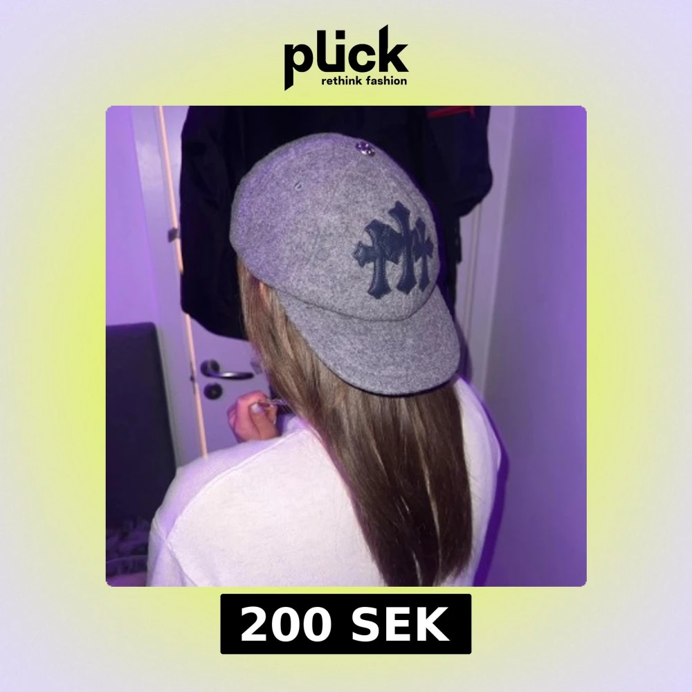Snygg grå keps i ull från Chrome Hearts med tre mörka korsdetaljer på framsidan. Kepsen har en dekorativ knapp på toppen och är fodrad med bomull för extra komfort. OBS INTE CHROME HEARTS UTAN NÄGOT LIKNANDE