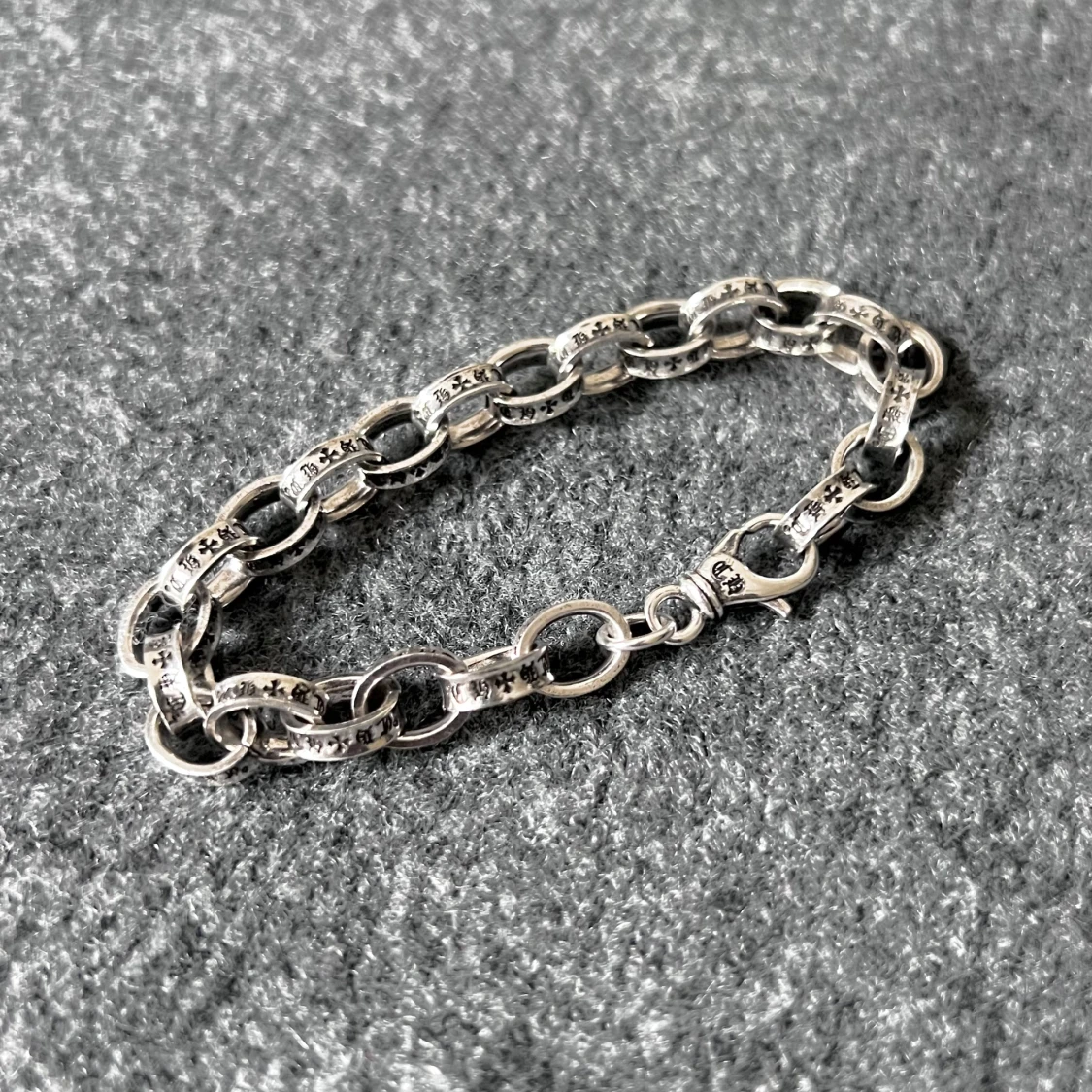 Edgy bracelet with bold engraved details. Sleek and unisex. 18 cm