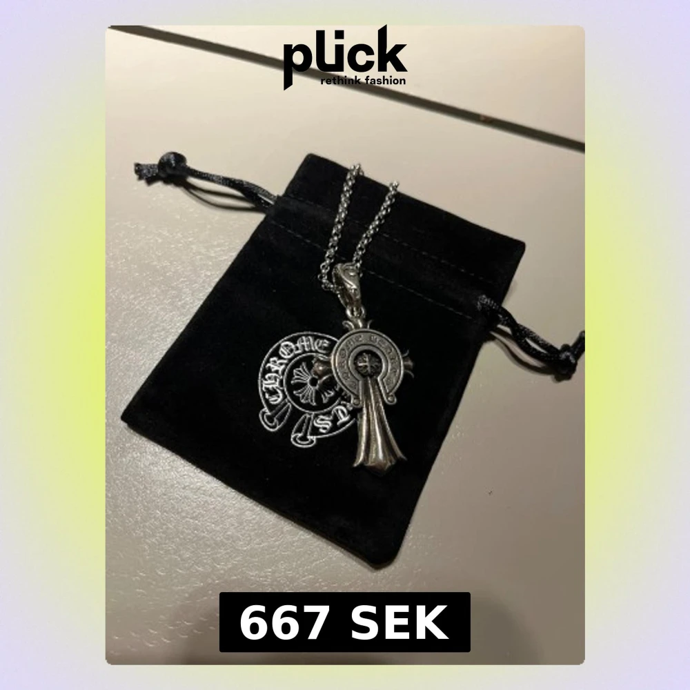 Säljer ett Chromehearts necklace. det är i tung bra kvalitets metall. Kommer med en present påse (bild) yttligare frågor är det bara att höra av sig:))