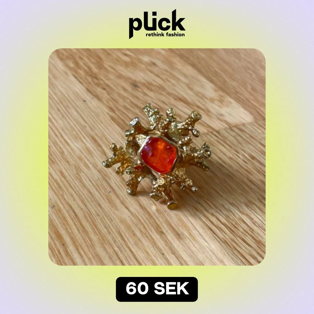 Guldig ring, med orange sten och cool struktur. Har guldplätering. Skriv vid fler frågor