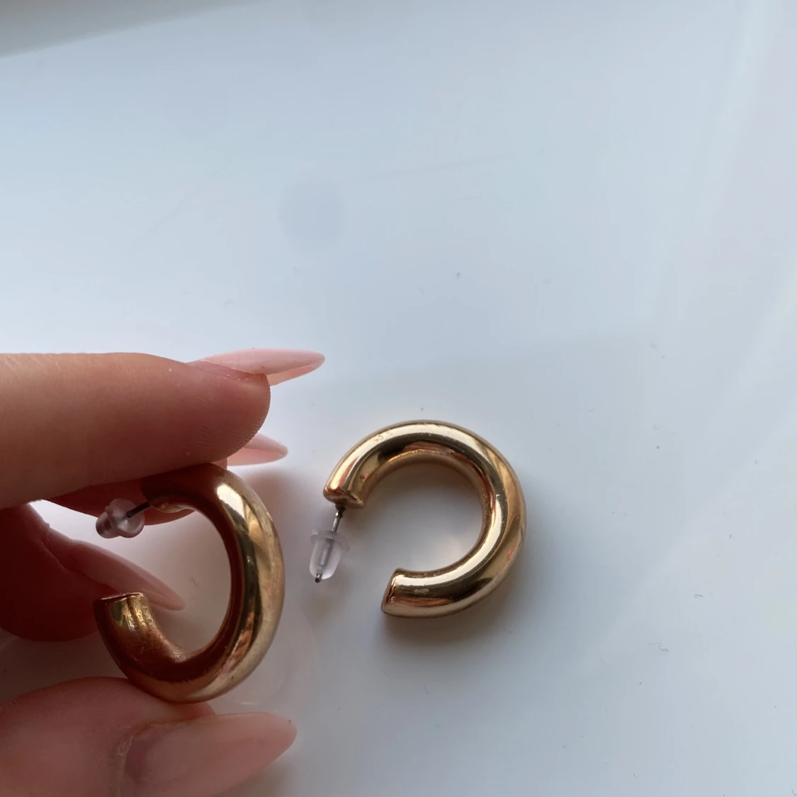 Guldfärgade örhängen. Om jag minns rätt är de köpta på hm.