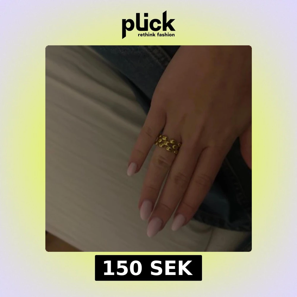 Säljer en chunky ring i guldpläterad metall med coolt bubbligt mönster. Ringen har en bred design med två rader av upphöjda, runda detaljer som ger en unik och trendig look. Perfekt statement-piece för dig som gillar att sticka ut.
