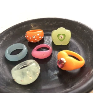 Coola chunky ringar i olika färger och former 🧡🩷💙💚Säljer för 10kr styck, köp alla för 50kr ☺️