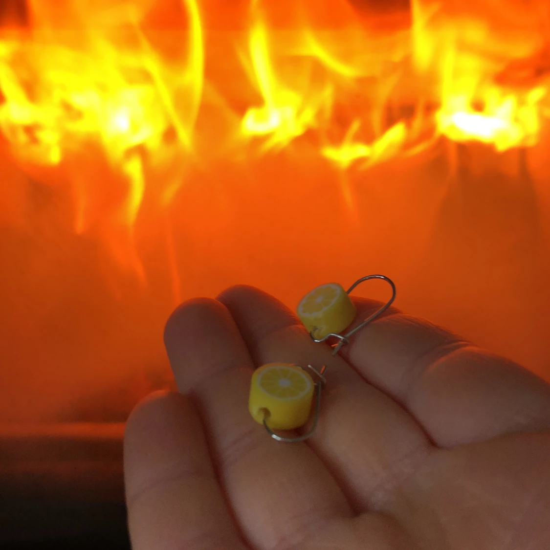 Hej! Jag säljer ett par örhängen som jag har gjort själv det är som man knäpper upp det är ingen med plupp där bak man knäpper fast dom hoppas någon vill köpa💗