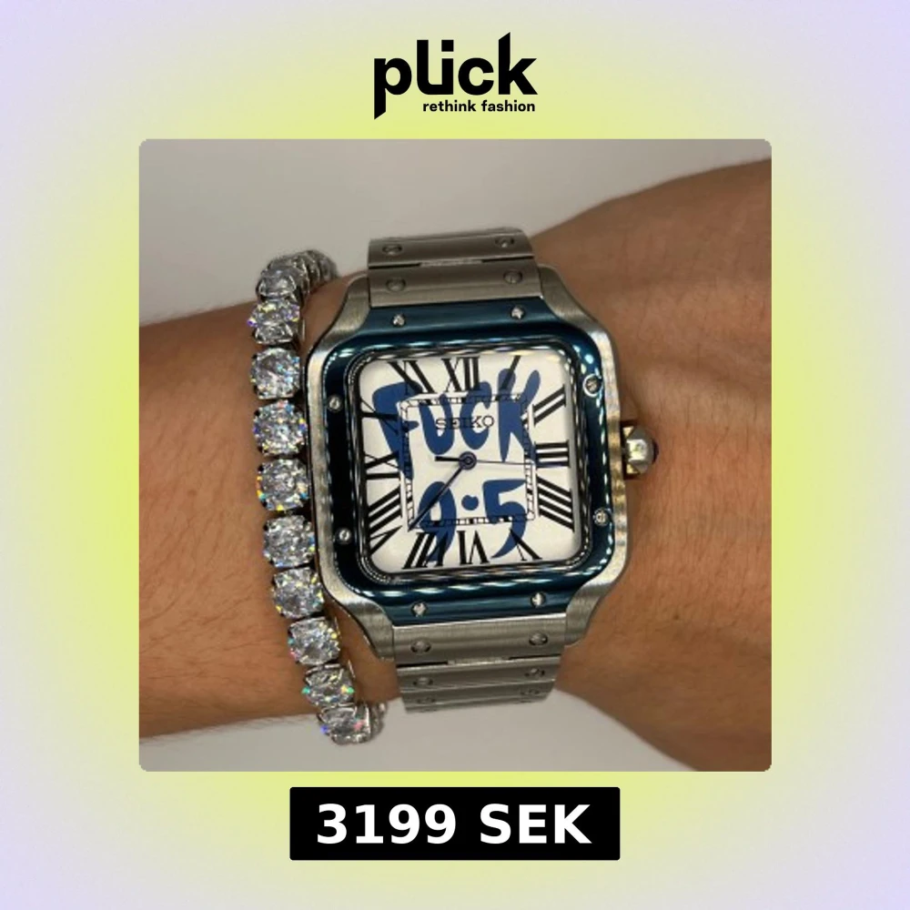Säljer en Seiko automatisk klocka med unik vit urtavla och svarta romerska siffror samt mörk blå detaljer. Robust boett i rostfritt stål och integrerad länk. • Automatisk urverk • Datumvisning • 40 mm boett • Rostfritt stål Matchande lyxarmband med stora stenar ingår! Allt i mycket fint skick – perfekt för dig som vill sticka ut med stil!
