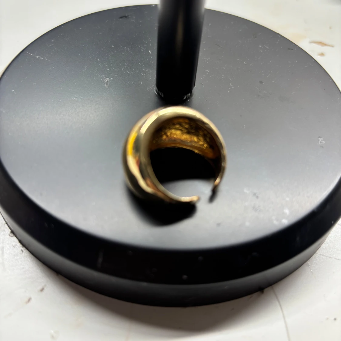 Säljer en bred och stilren ring i guldton. Ringen är öppen baktill vilket gör den justerbar i storlek. Perfekt för dig som gillar minimalistiska och trendiga accessoarer.