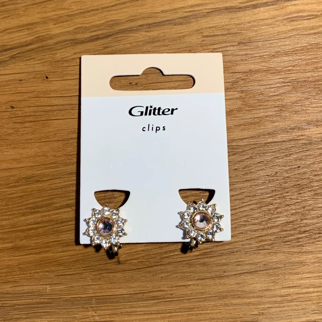 Säljer tre par clips. Ena paret är clips med rund form och små pärlor i blomliknande mönster väldigt söt men har rostat/oxiderat lite. De andra två paren är i väldigt bra skick dock. Perfekta för dig som vill ha klassiska och eleganta accessoarer utan hål i öronen. Obs de är inte från glitter, använde bara förpackningen för att ta bilder