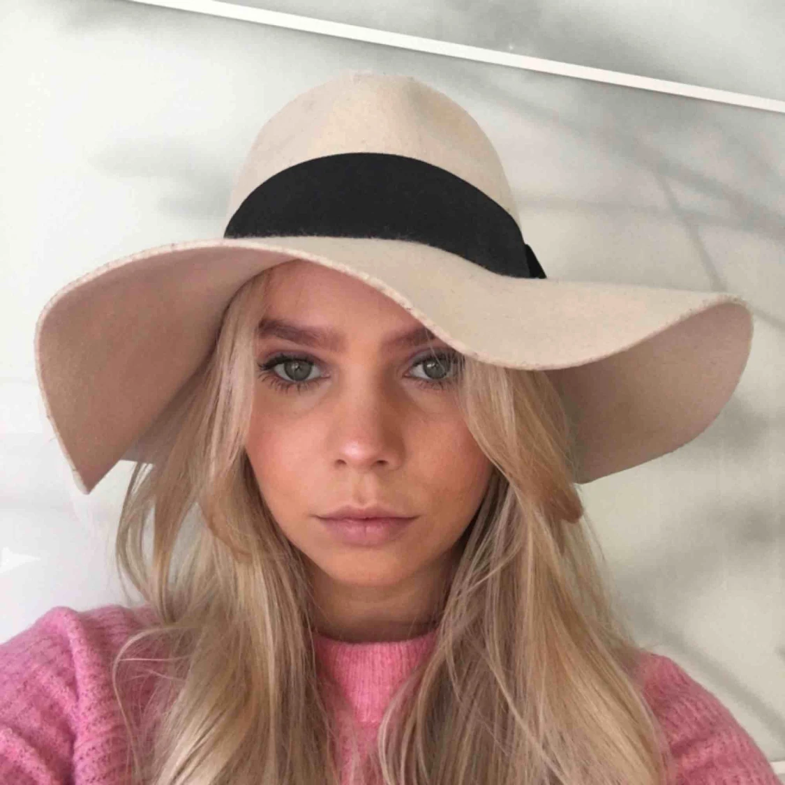 Hatt av tyll. Beige och svart. Frakt ingår ej.