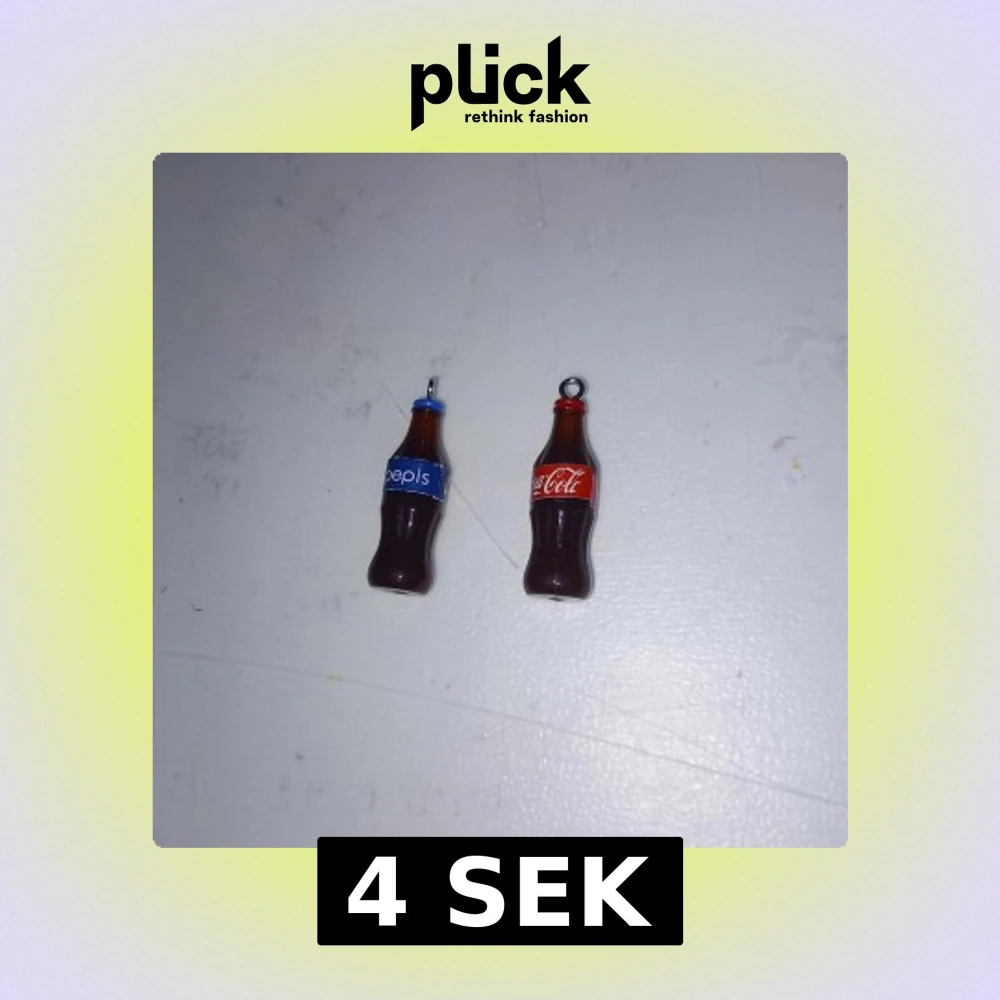 Roliga örhängen formade som små colaflaskor, en med blå Pepsi-etikett och en med röd Coca-Cola-etikett. Perfekt accessoar för dig som gillar unika och lekfulla smycken. Färgerna är brun, blå och röd.