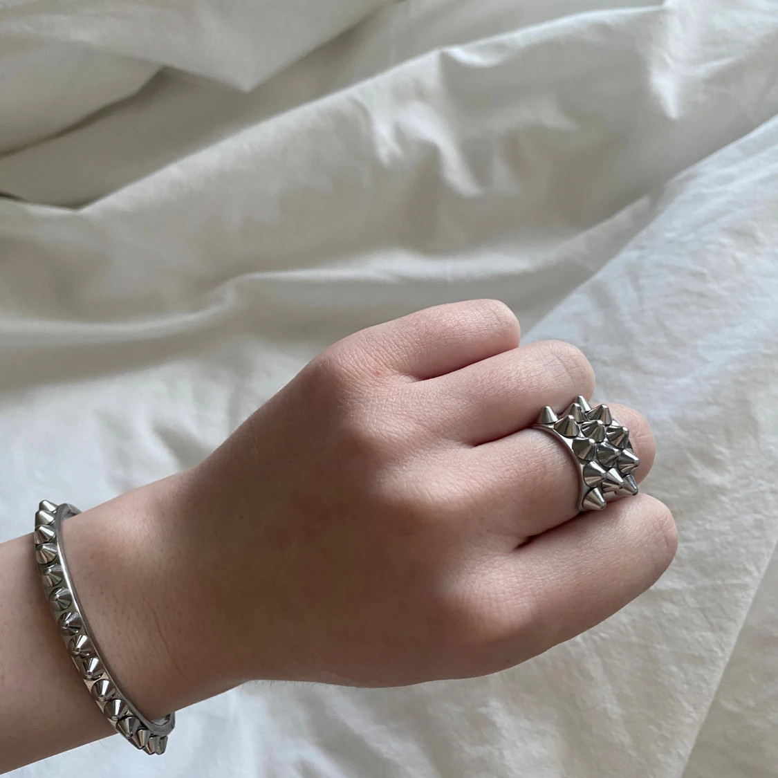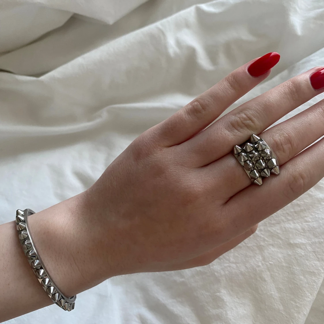 Matchande armband och ring med nitar