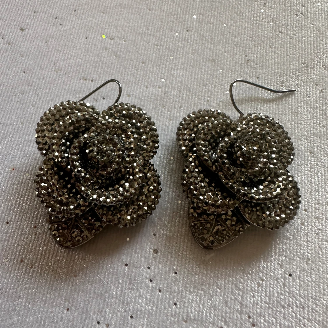 Som nya Mycket glittriga, coola örhängen i nyskick. I mörksilver färg