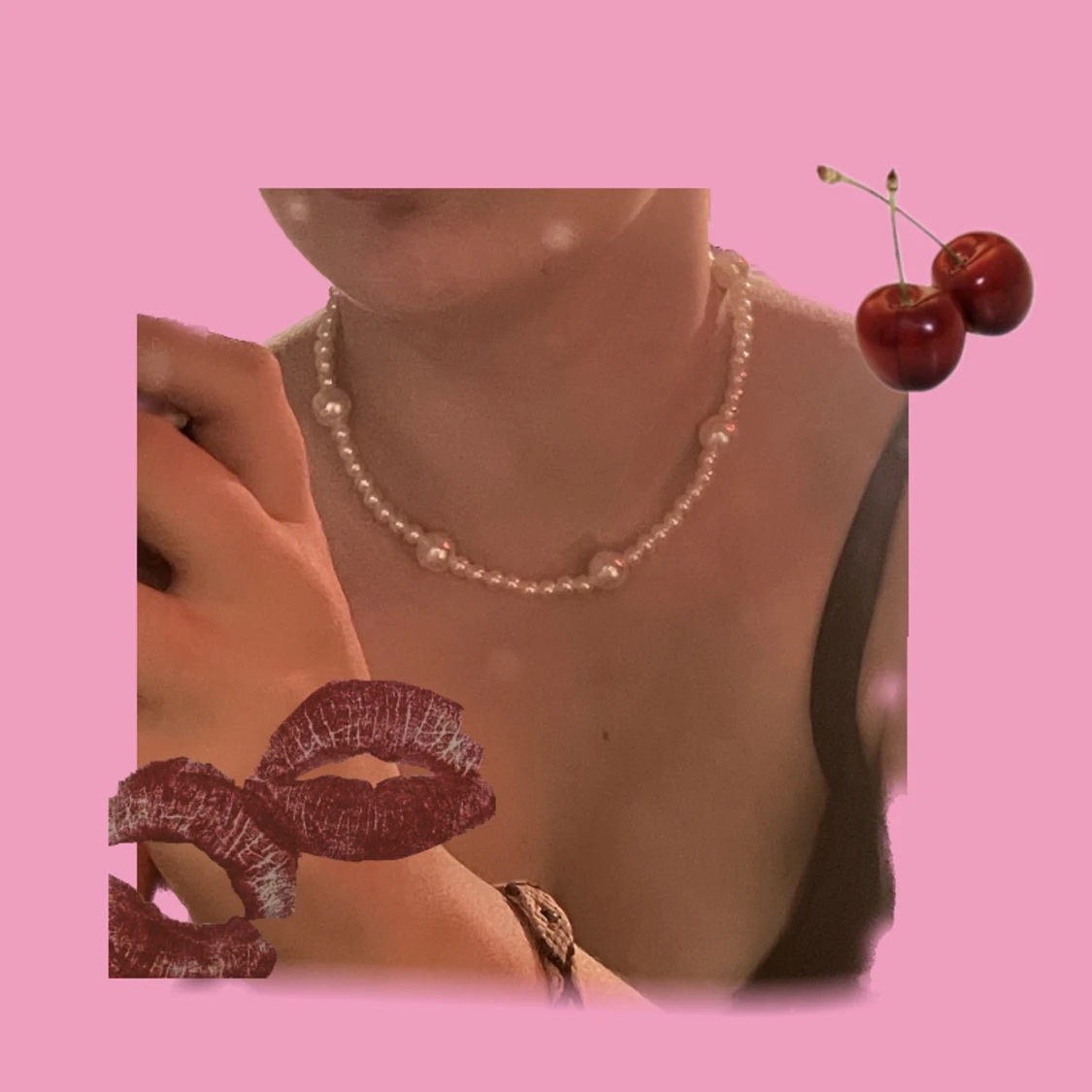 Ett pärlhalsband ganska litet men väldigt fint🫶 skriv om du vill ha mer bilder