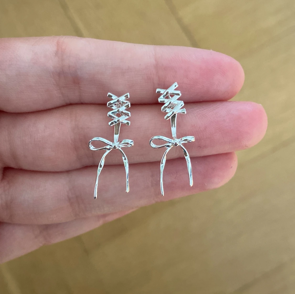 Jättefina Coquette rosett örhängen i S925 silver! Nickelfria såklart. Lätta och väldigt unika! Skickar gärna fler bilder🫶🏼🫶🏼