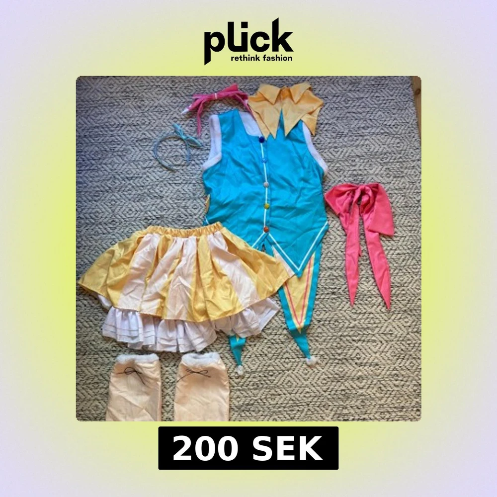 Okej skick och har inte varit använd många gånger. Ingen peruk ingår. Dom vita bommulsbollarna på klänningen på volangerna har nästan åkt av