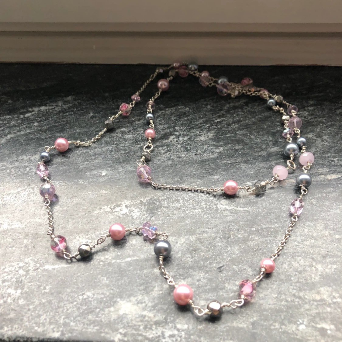 Jätte gulligt rosa långt pärlhalsband. Säljer då den inte kommer till användning.
