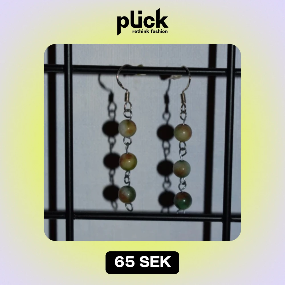 Handgjorda örhängen med gröna pärlor. De görs vid beställning och är därmed helt oanvända. Krokarna är gjord av äkta silver. Kolla gärna in min profil för fler handgjorda örhängen :))