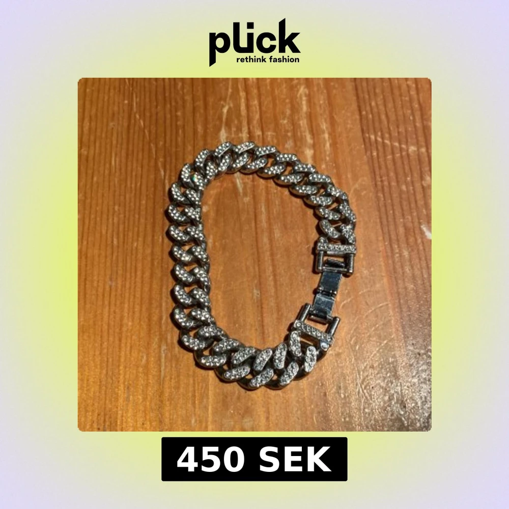 Säljer en cuban link armband i silverfärg täckta av glittriga stenar. Perfekt statement piece för dig som gillar att sticka ut. Länkarna är breda och armbandet har ett rejält spänne.