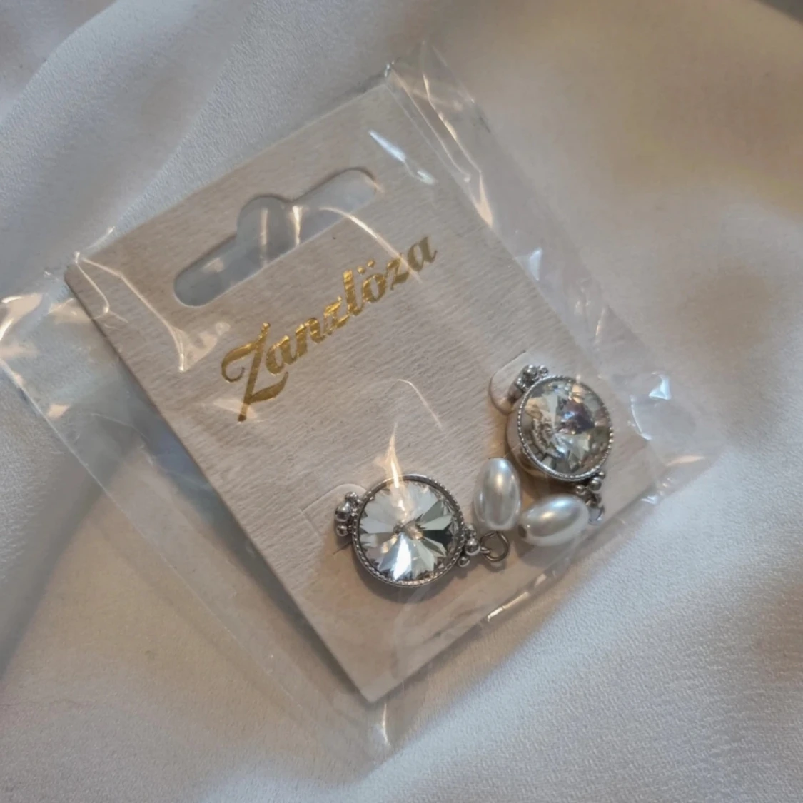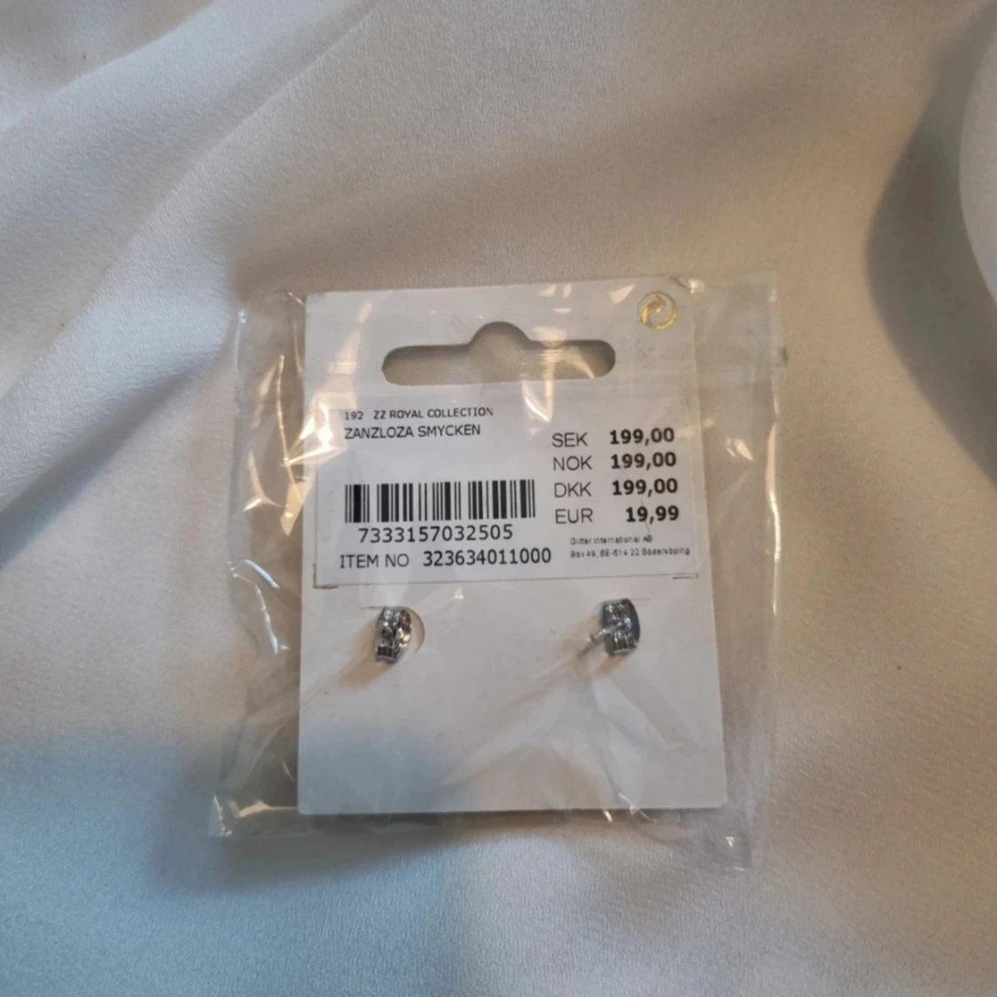 Eleganta silverfärgade örhängen från Zanzlöza med gnistrande stenar och hängande pärlor. Perfekta för att ge en touch av glamour till din outfit. 💎✨Jag är osäker på exakt vilket material dessa är gjorda i, men de är helt oöppnade och aldrig använda. Fick dem som en present för några år sedan men glömde att jag hade dem, de är inte min stil längre men hoppas någon annan kommer gilla dem! 🥰