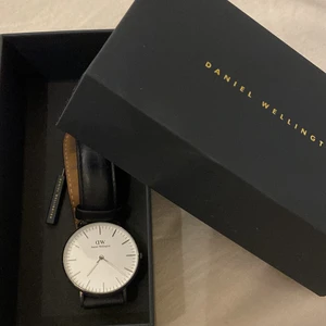 Säljer min Daniel Wellington klocka med svart läderband! Ett batteribyte behövs på klockan, vet att butiken Ur och Penn gör batteribyte på armbandsur! Ordinariepris: 1699:- och säljer den för 450kr! Låda medföljer!