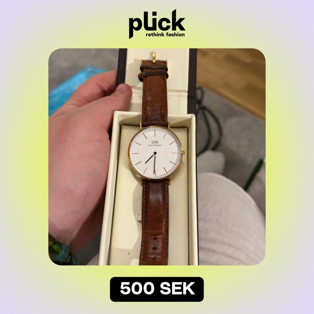 Säljer en stilren klocka från Daniel Wellington med vit urtavla och brunt läderarmband. Klockan har en elegant guldfärgad boett och minimalistisk design. Perfekt för både vardag och fest! Bra skick säljes med kartong! 450kr Nu sänkt pris 300kr