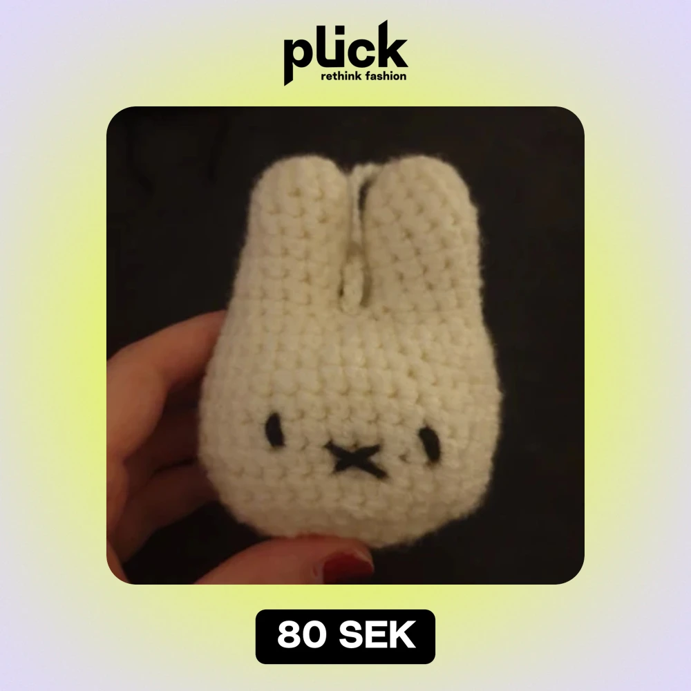 En söt, handgjord vit virkad Miffy.. Perfekt som dekoration eller nyckelring. Den är liten och lätt att bära med sig. Kan knytas till väska, nycklar och annat 💕🐰