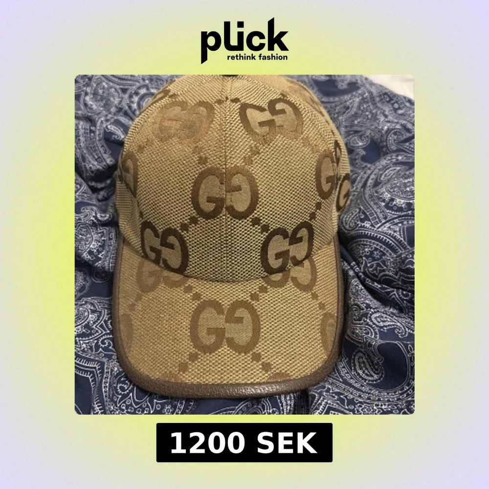Säljer en snygg beige och brun keps från Gucci i storlek M. Kepsen har det klassiska GG-mönstret över hela ytan och detaljer i brunt skinn längs kanten. Materialet är slitstark bomull och polyester, perfekt för dig som vill ha en lyxig streetstyle-look.