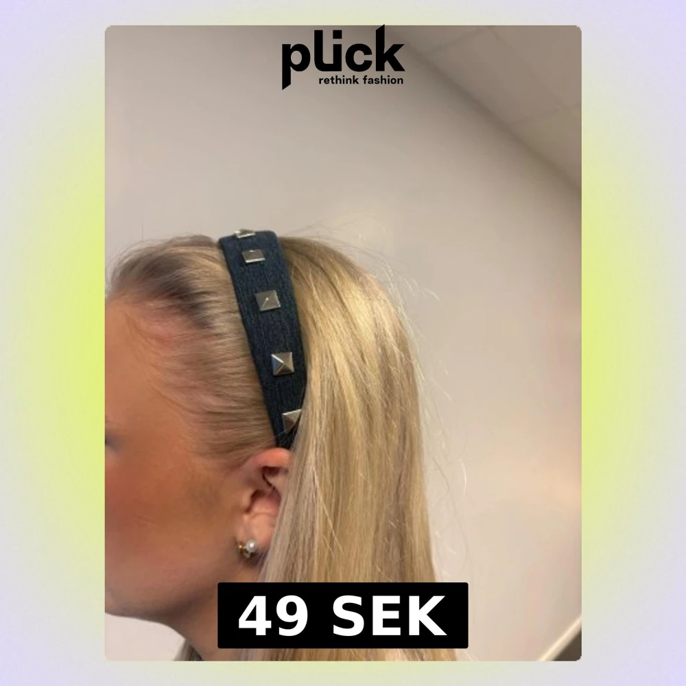 MörkblĂ„tt diadem av Ă„tervunna jeans med silvriga nitar, med silke inuti!đ Diademet Ă€r ca 12 cm diameterđ