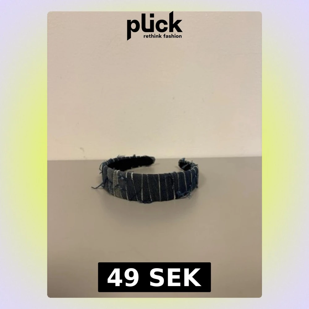 MörkblĂ„tt diadem av Ă„tervunna jeans med remsor, med silke inuti!đ Diademet Ă€r ca 12 cm diameterđ