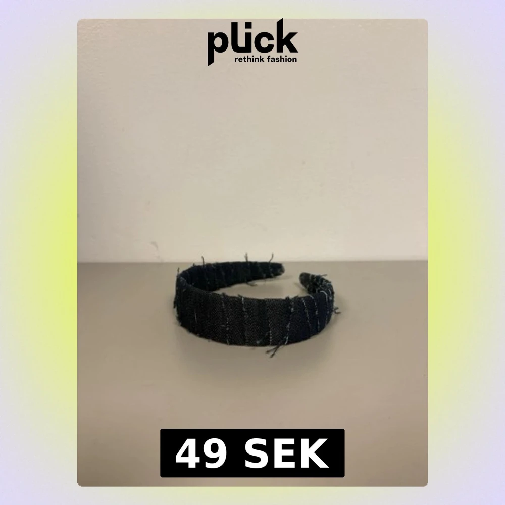 Svart diadem av Ă„tervunna jeans med remsor, med silke inuti!đ Diademet Ă€r ca 12 cm diameterđ