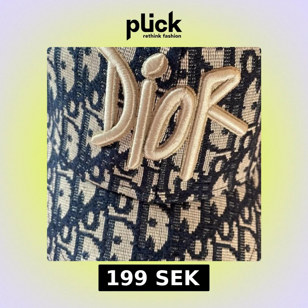 Snygg keps från Dior med ikoniskt blått och vitt monogrammönster. Stor broderad Dior-logga framtill i beige. Justerbar rem baktill med metallspänne där Dior är ingraverat. Kepsen är tillverkad i ett vävt material som känns lyxigt och trendigt.