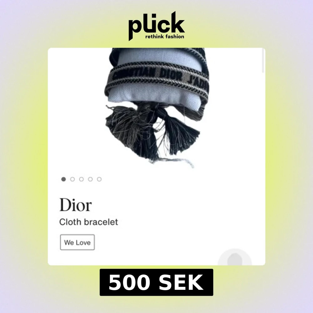 Snyggt tygarmband från Dior i svart och grått med texten 'Christian Dior J'Adior'. Armbandet har tofsar i ändarna och är perfekt för att ge din outfit en exklusiv touch.