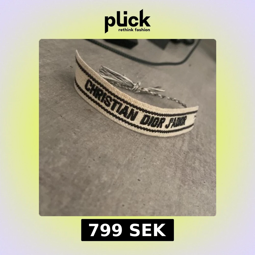 Snyggt beige armband från Christian Dior med texten 'CHRISTIAN DIOR J'ADIOR' i svart. Armbandet har justerbar knytning och är gjort i textil med svarta detaljer. Perfekt accessoar för att lyfta din outfit.
