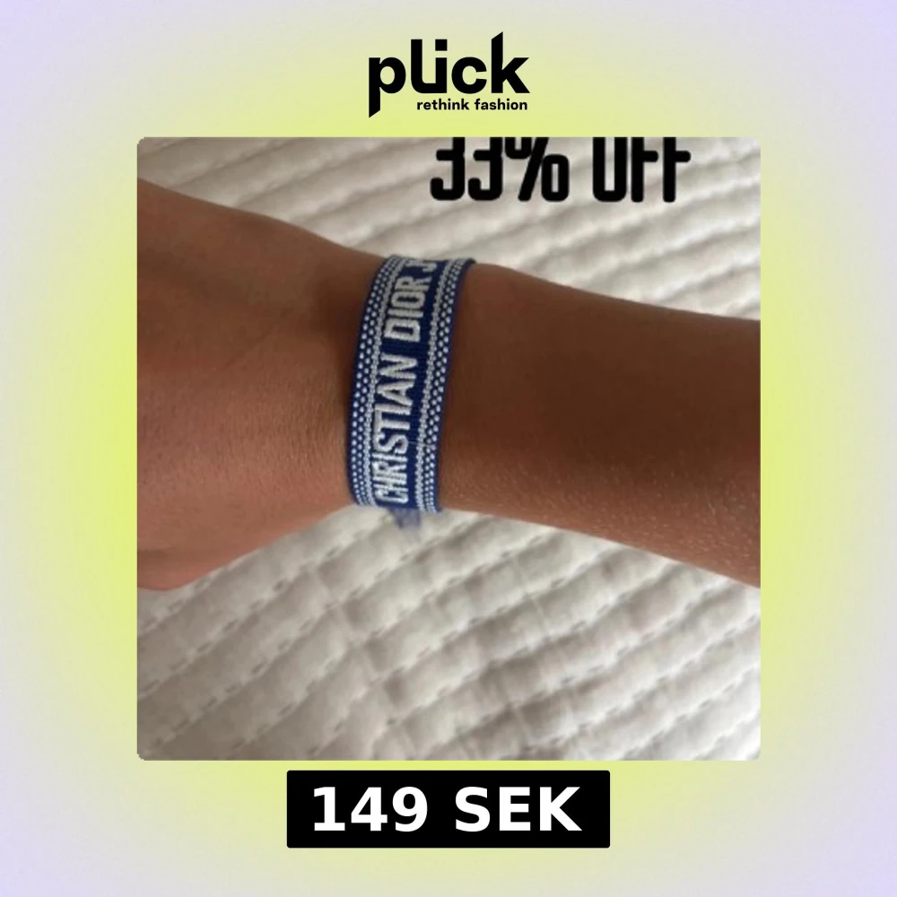 Snyggt blått armband från Christian Dior med vit text och detaljer. Armbandet har en sportig och trendig look, perfekt för att lyfta din outfit med en exklusiv touch.