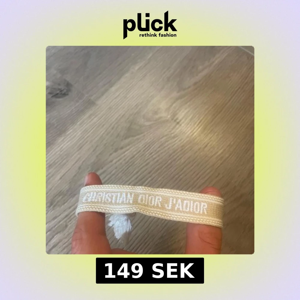 Superfint beige armband från Christian Dior med texten 'J'Adior' broderad i vitt. Armbandet är gjort i tyg och är justerbar i storleken.