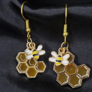 Egengjorda örhängen med bi och honungsberlocker! Rostfritt. Troligtvis nickelfria men är du allergiker bör du vara försiktig. Perfekt present till din flickvän!