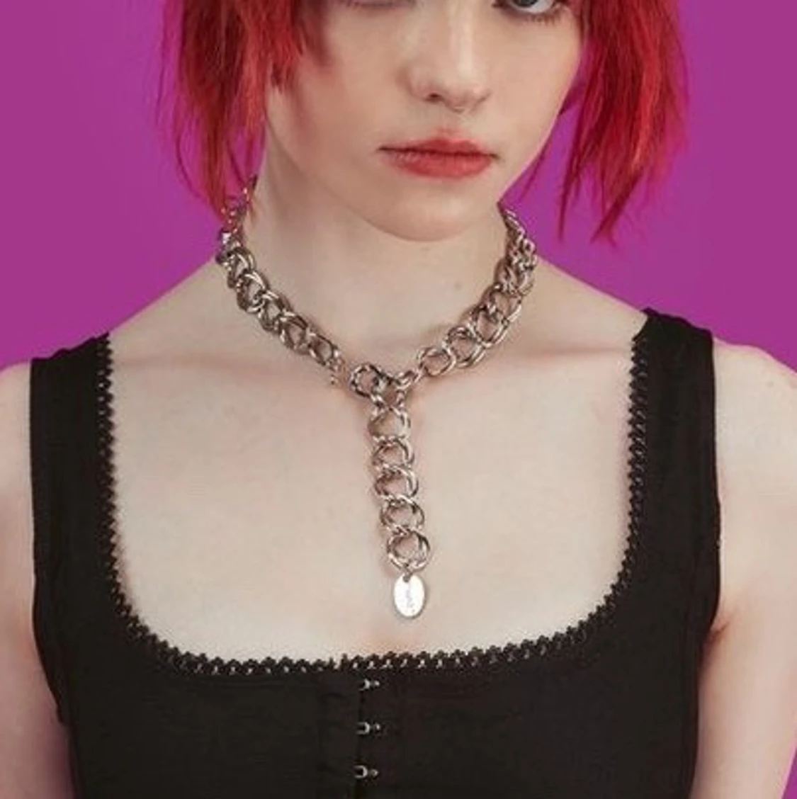 dubbellänkat halsband från UNIF, kan knäppas vart som helst på kedjan. Längd ca 47 cm. Sparsamt använt, inga uppenbara defekter. Kommer i brand:ad UNIF låda. Kan mötas upp i stockholm annars står köparen för spårbar frakt 66kr 💒
