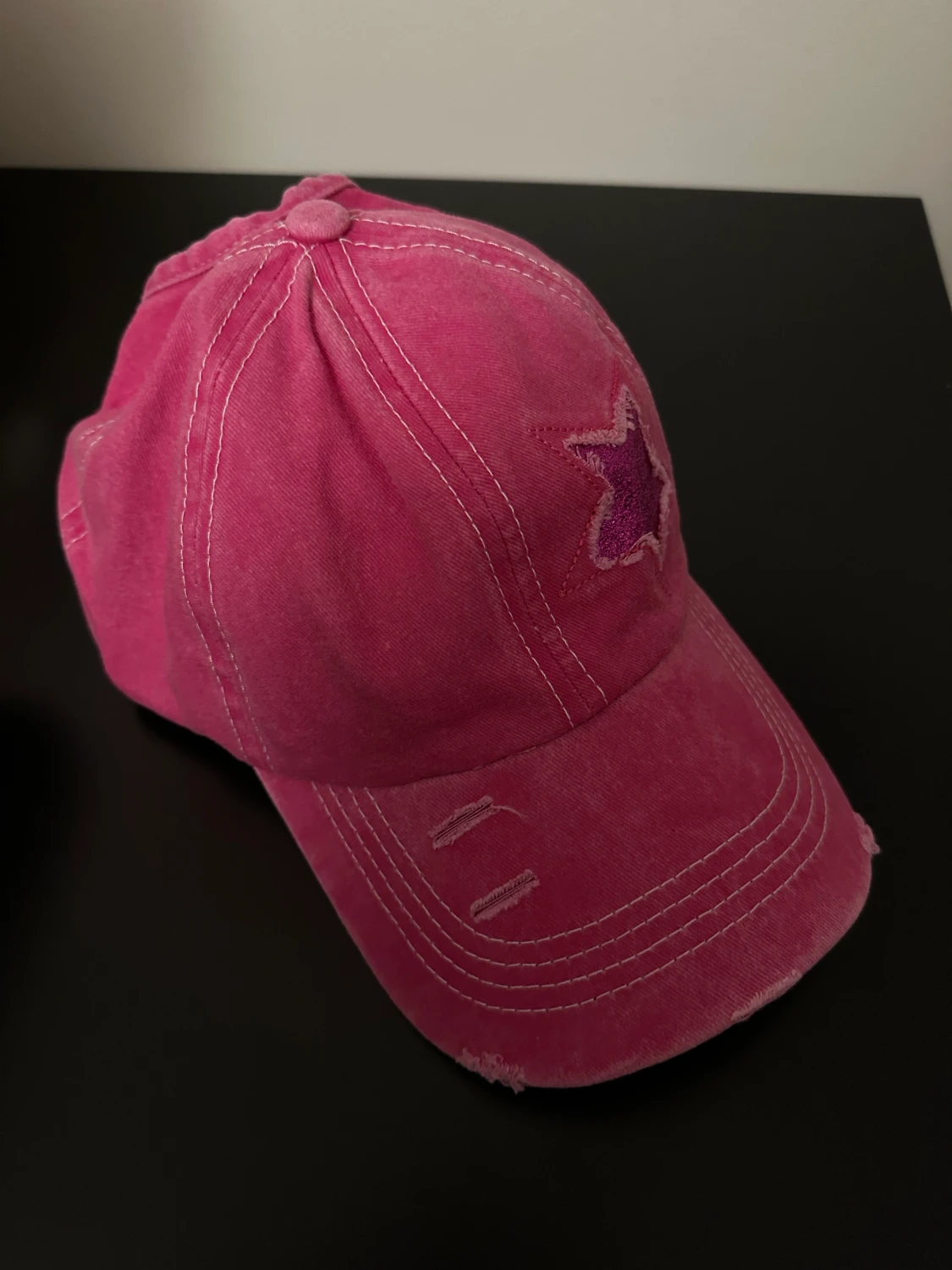 Skön rosa i vintage tvätt så den är lite blekt. Glitter på stjärnorna med vanlig storlek så passar alla