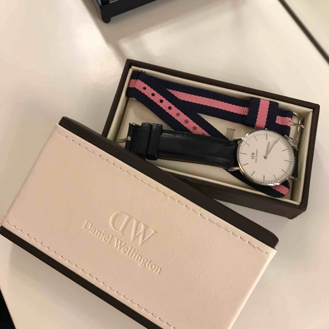 Fin dw klocka i nyskick! Följer med två armband! Hel och funkar som den ska! Fraktar