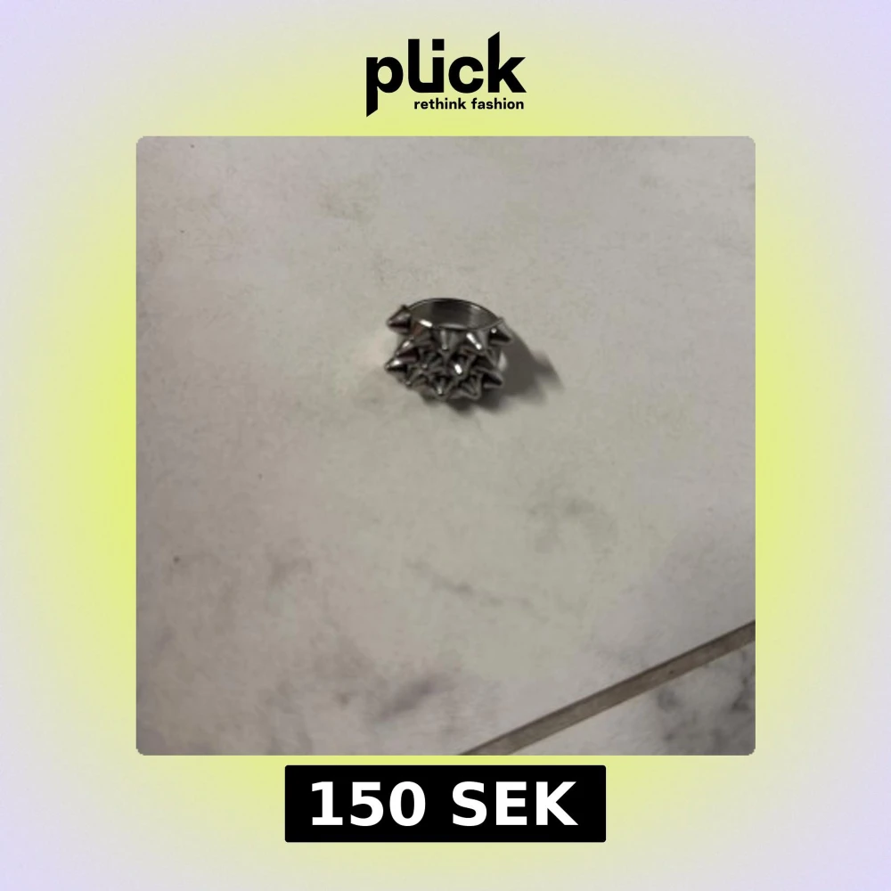 Cool bred ring i silverfärg med flera små konformade nitar runt hela bandet. Ringen har en edgy och unik design som verkligen sticker ut och passar perfekt för dig som gillar att addera lite attityd till din stil. Edblad knappt använd storlek 17.50. Köparen står för frakten :)