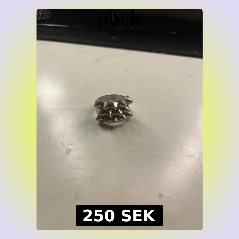 Cool och chunky ring i silverfärgat rostfritt stål från Edblad. Rektangulär front med flera små, spetsiga nitar som ger en edgy vibe. Perfekt för dig som gillar statement-smycken och vill sticka ut med din stil. Sälj pga för stor storlek för mig och har köpt en ny storlek.