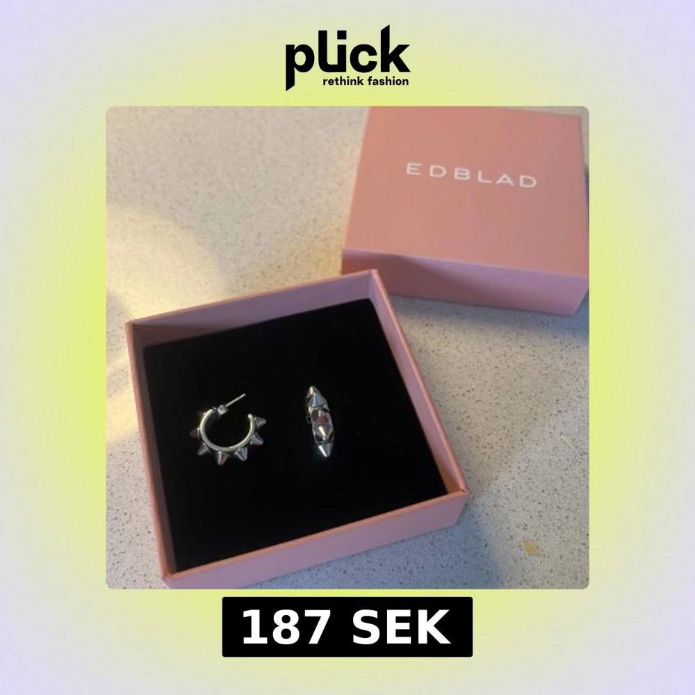Säljer ett par coola örhängen från Edblad i silverfärg med markerade nitar runt hela ringen. Kommer i original ask. Bra skick! 💕