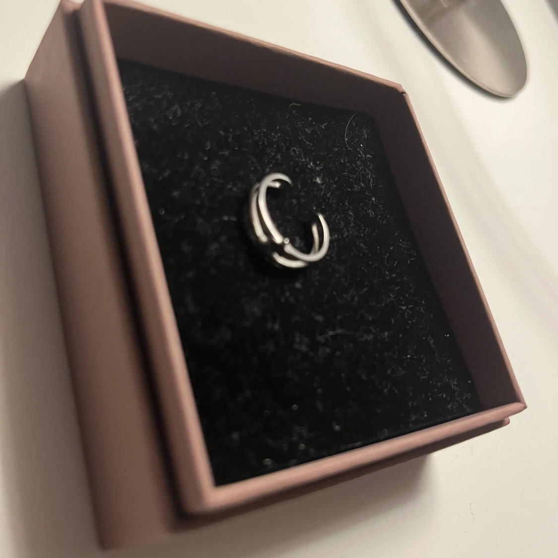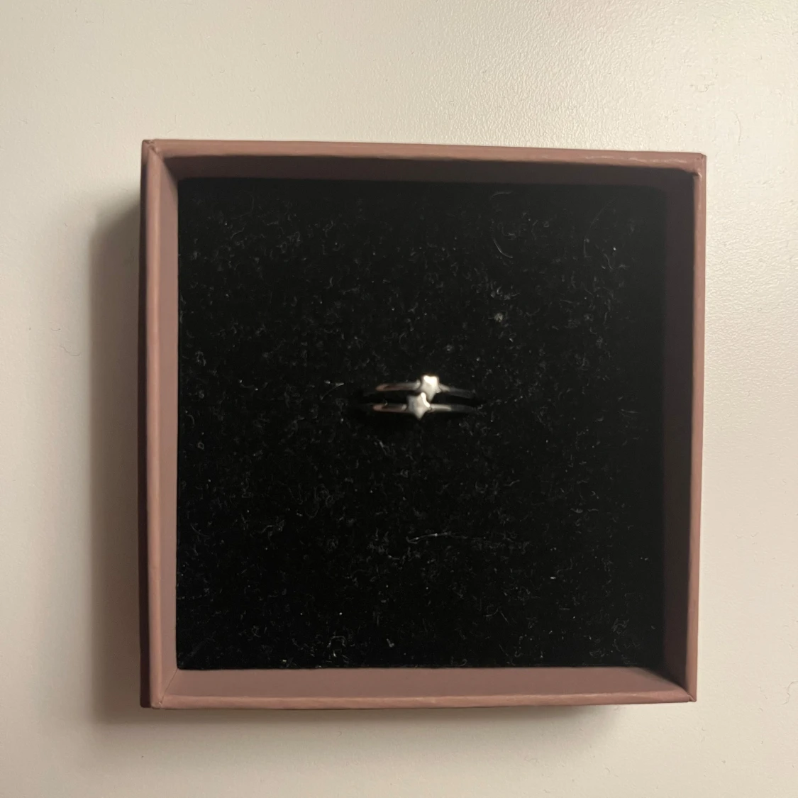 Elegant silverfärgad ring med en liten stjärndetalj i mitten. Ringen har en enkel och stilren design som passar perfekt för både vardag och speciella tillfällen.