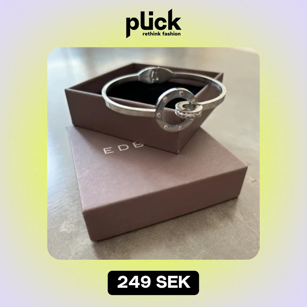 Silvrigt armband från Edblad. Storlek Small, använt ca 2 gånger. Detaljer hämtade från deras hemsida: Diameter stor ring 20 mm, liten ring 12 mm, storlek skena 3x2 mm Innerstorlek 16 cm. Kubisk zirkon, blankt rostfritt stål även nickelsäkert.