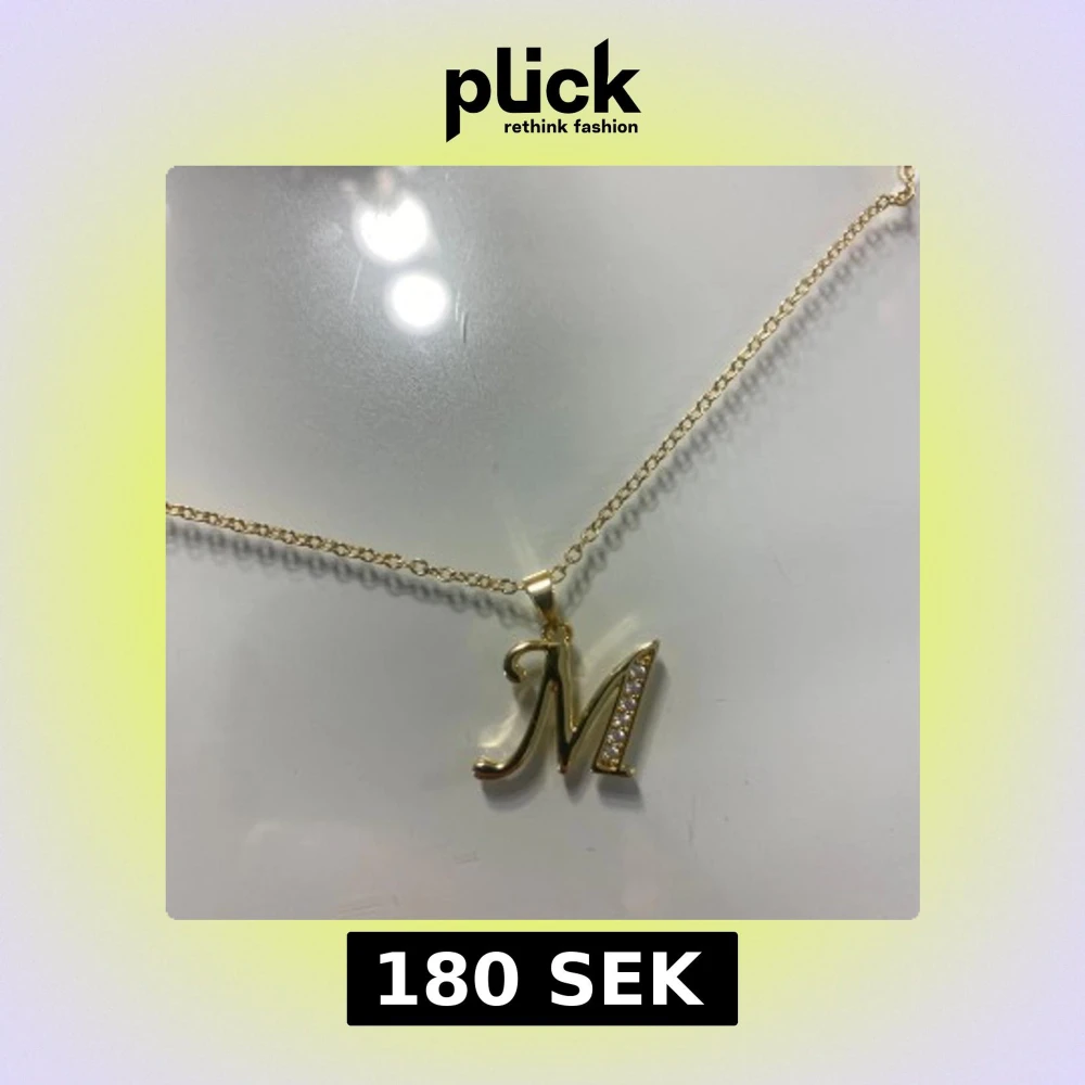 Snyggt halsband från Evry Jeweles i guld med en berlock formad som bokstaven M. Berlocken har glittriga stenar på ena sidan som ger extra bling. Kedjan är tunn och har ett hjärtformat hänge vid låset. Perfekt för dig som vill ha något personligt och stilrent. Nytt kostar 300kr🩷