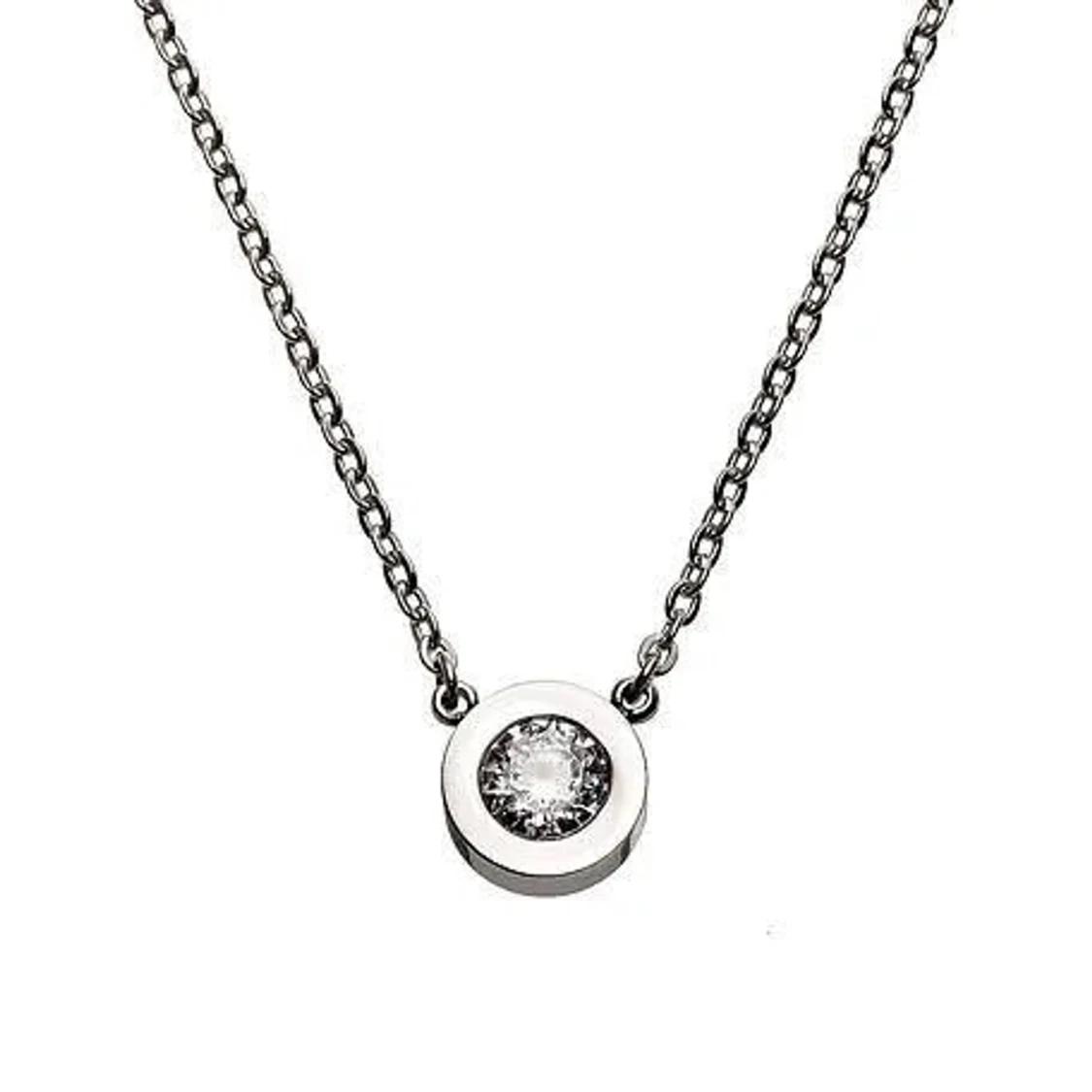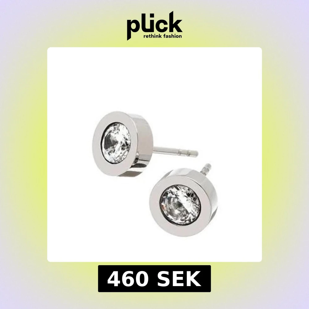 Snyggt Edblad smyckeset med matchande örhängen och halsband i silverfärgad metall. Båda har rund form och är dekorerade med gnistrande, klara kristaller i mitten. Perfekt för dig som gillar stilren och modern design med lite extra bling.