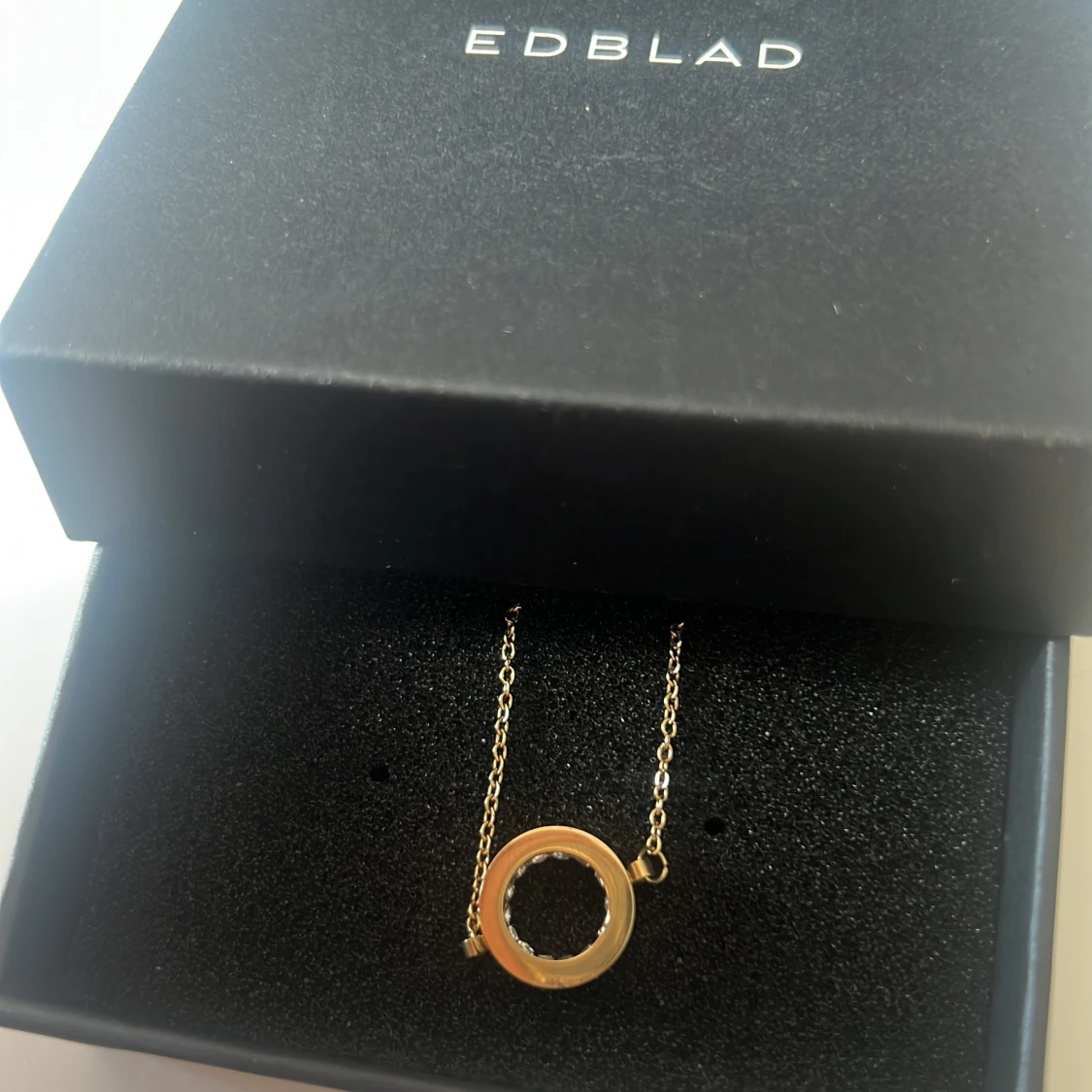 Elegant guldarmband från Edblad med en cirkulär hängande detalj prydd med små stenar. Armbandet har en tunn kedja och en liten rund berlock nära låset. Perfekt för att lägga till en touch av glamour till din stil