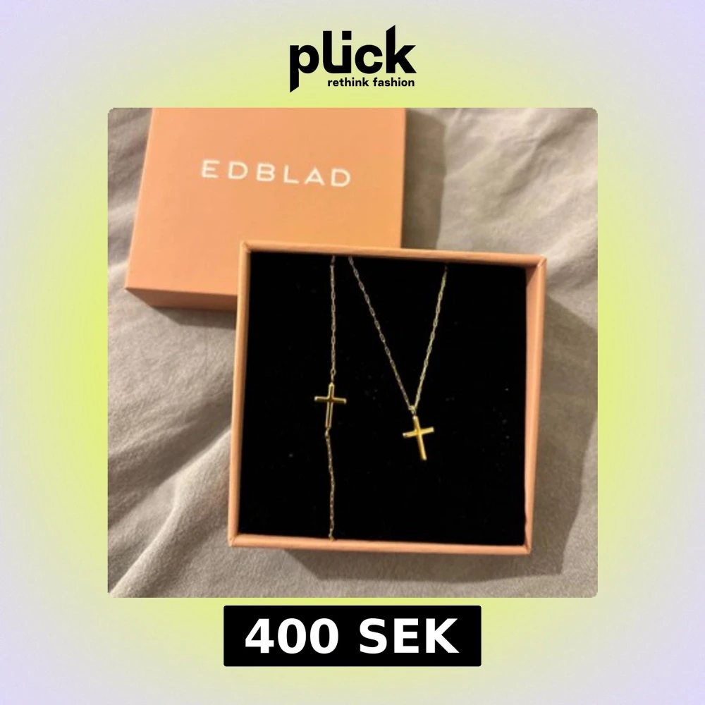Snyggt halsband & armband från Edblad med tunn kedja i guldton och ett stilrent kors som hänge. Perfekt för dig som gillar minimalistiska smycken med en personlig touch. Levereras i original ask. Nypris för halsbandet: 299 Nypris för armbandet 249