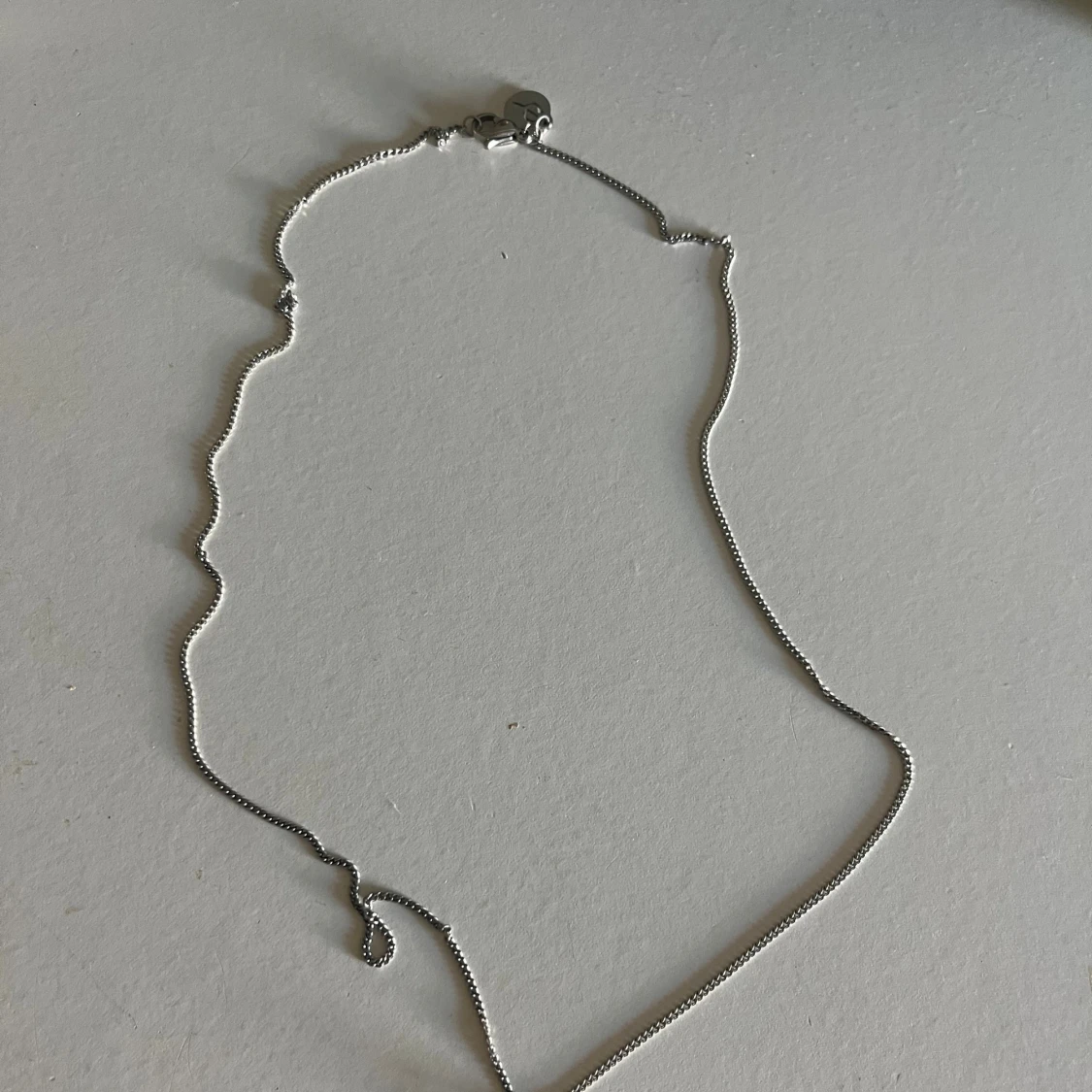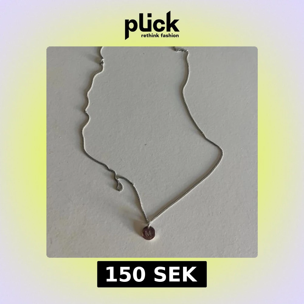 Stilrent silverhalsband med tunn kedja och en rund berlock med graverad bokstav M. Perfekt för dig som gillar minimalistiska smycken med personlig touch. Kedjan har ett klassiskt lås och berlocken är diskret men ändå iögonfallande.