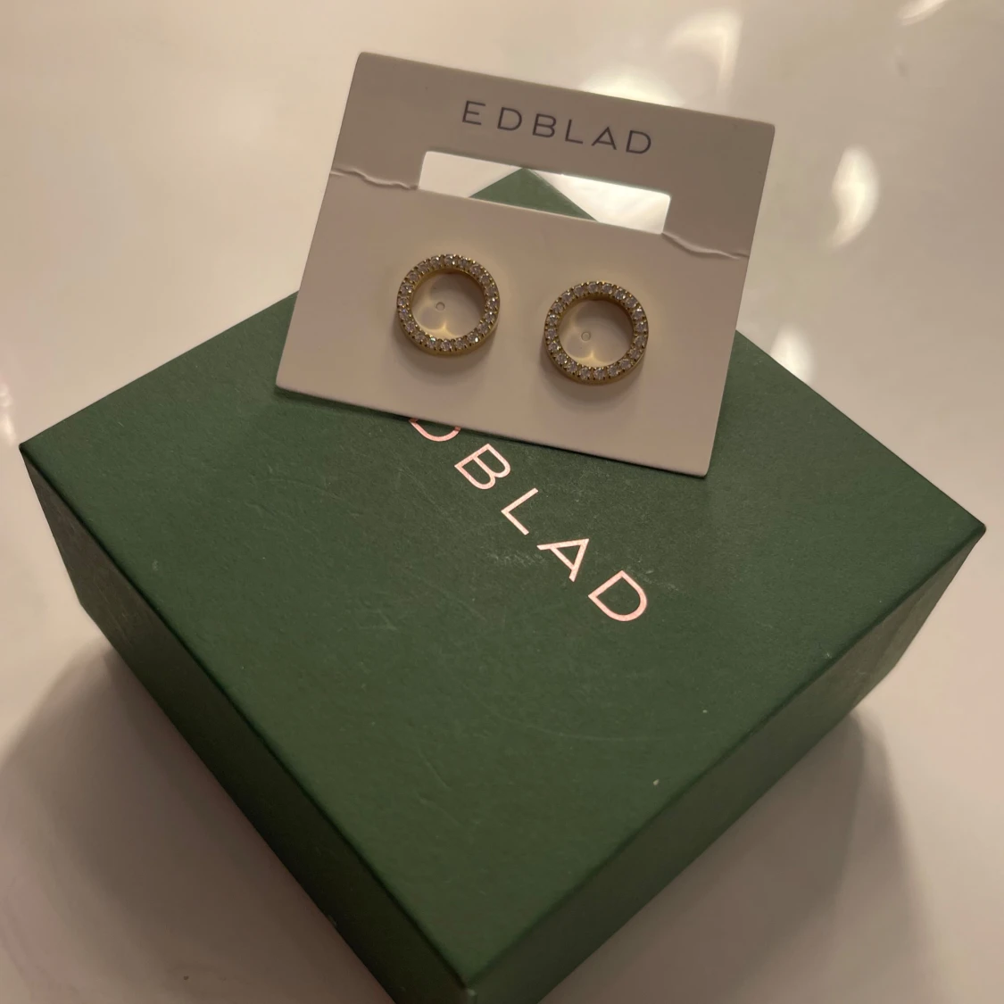 Guld pläterade örhängen med stenar ifrån Edblad, låda medföljer. Helt nya