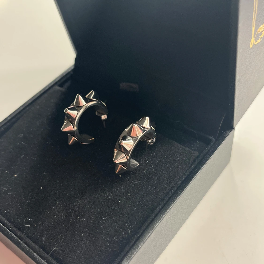 Snygga silvriga örhängen med nitar från Edblad, peak, som ger en edgy look. Perfekta för att addera lite attityd till din stil. De är runda och har en cool design som sticker ut. Använda två gånger så superbra skick! Skriv om du undrar över något💓
